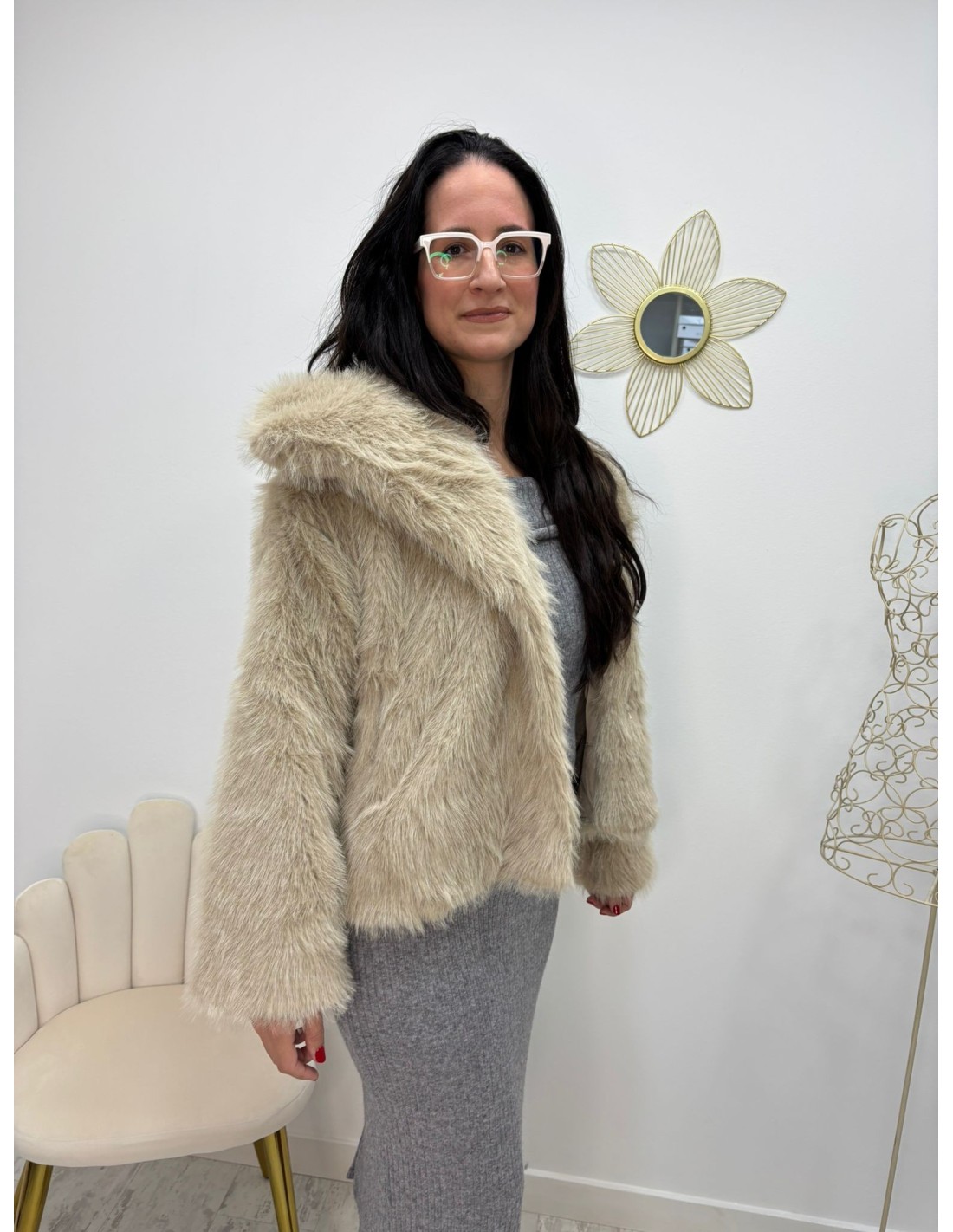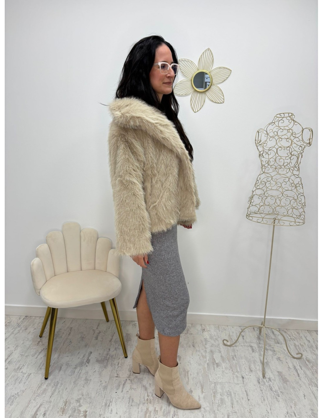 Espectacular abrigo corto de pelo tono burdeos muy suave y tendencia este año