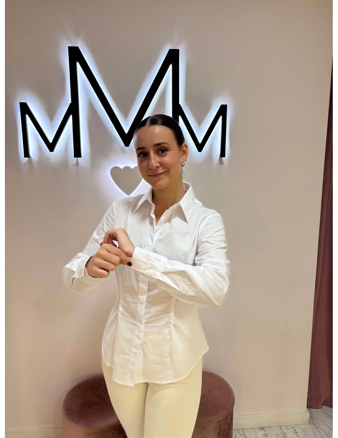 Perfecta camisa básica slim en color blanco, con el detalle de las pinzas para hacerla más entallada.