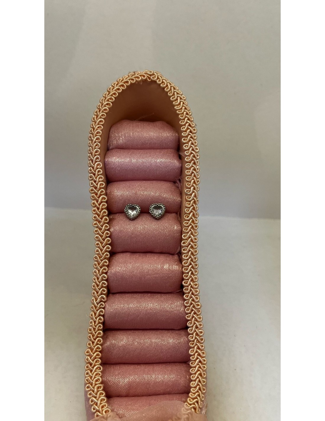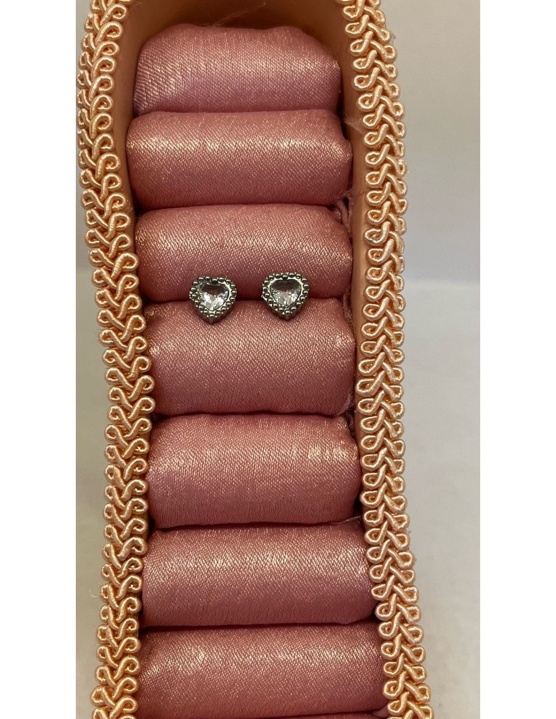 Pequeños pendientes de acero inoxidable en forma de corazón. Sirven para piercing