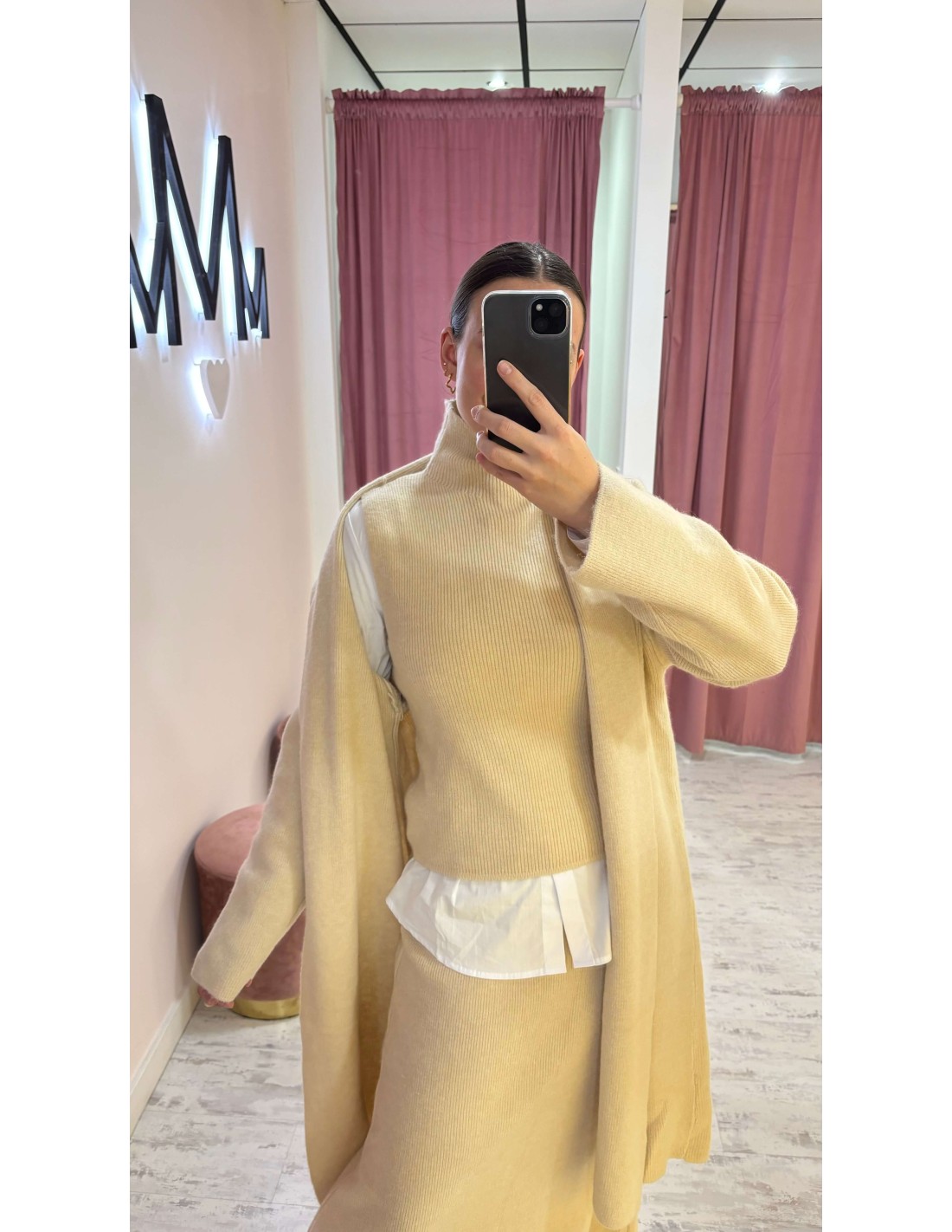 Gustoso y calentito jersey/ chaleco en color beige, con cuello alto ideal para llevar a cuerpo o con camisa debajo.