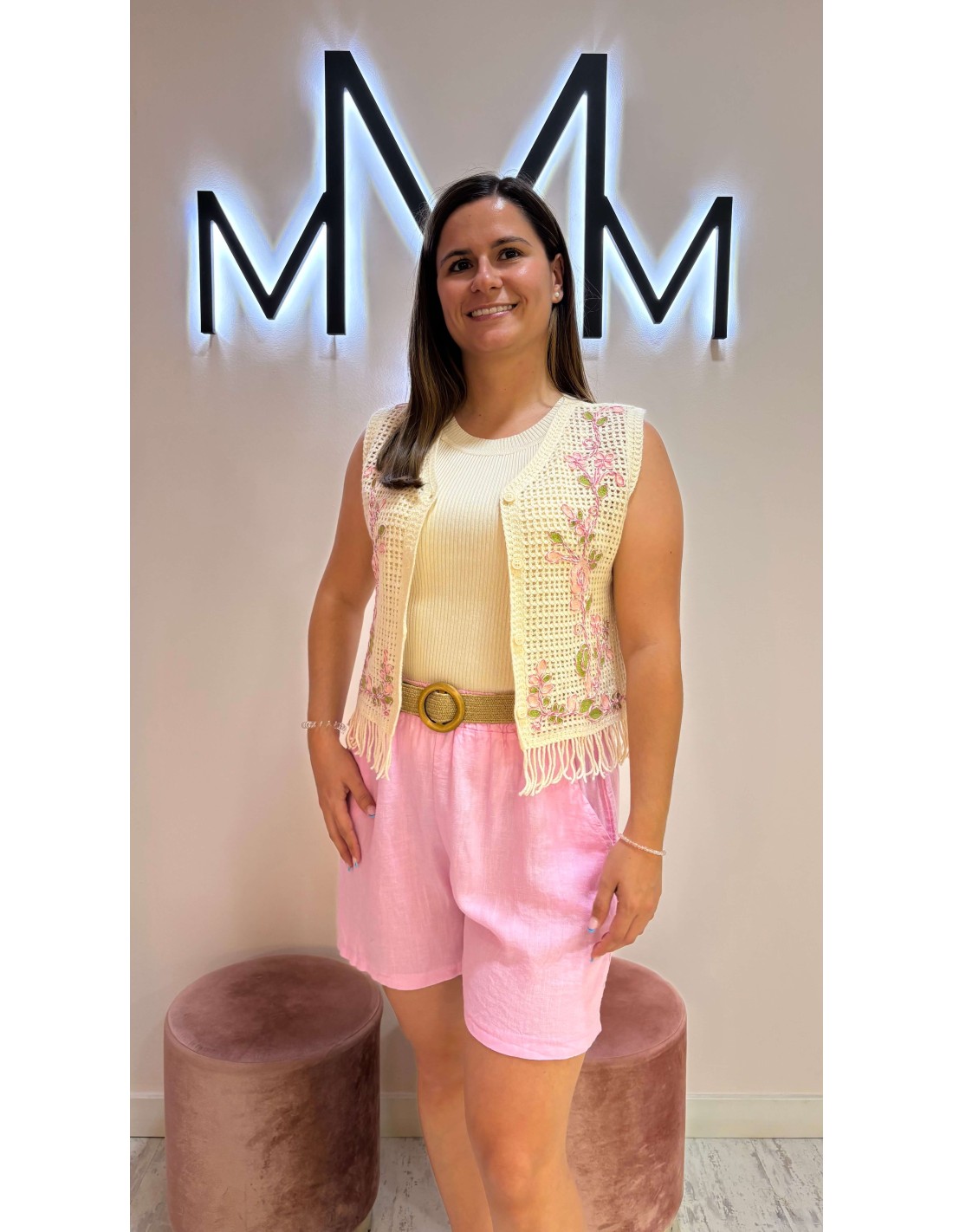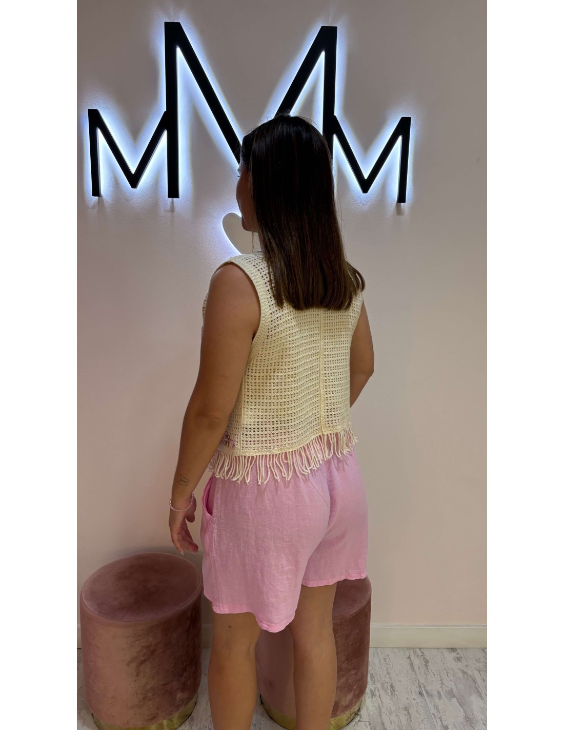 estiloso y cómodo short de lino con goma en la cintura.